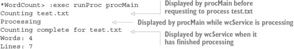 Danh sách 15.22. Phản hồi các lệnh trong wcService (WordCount.idr)