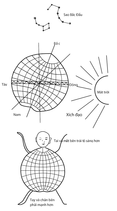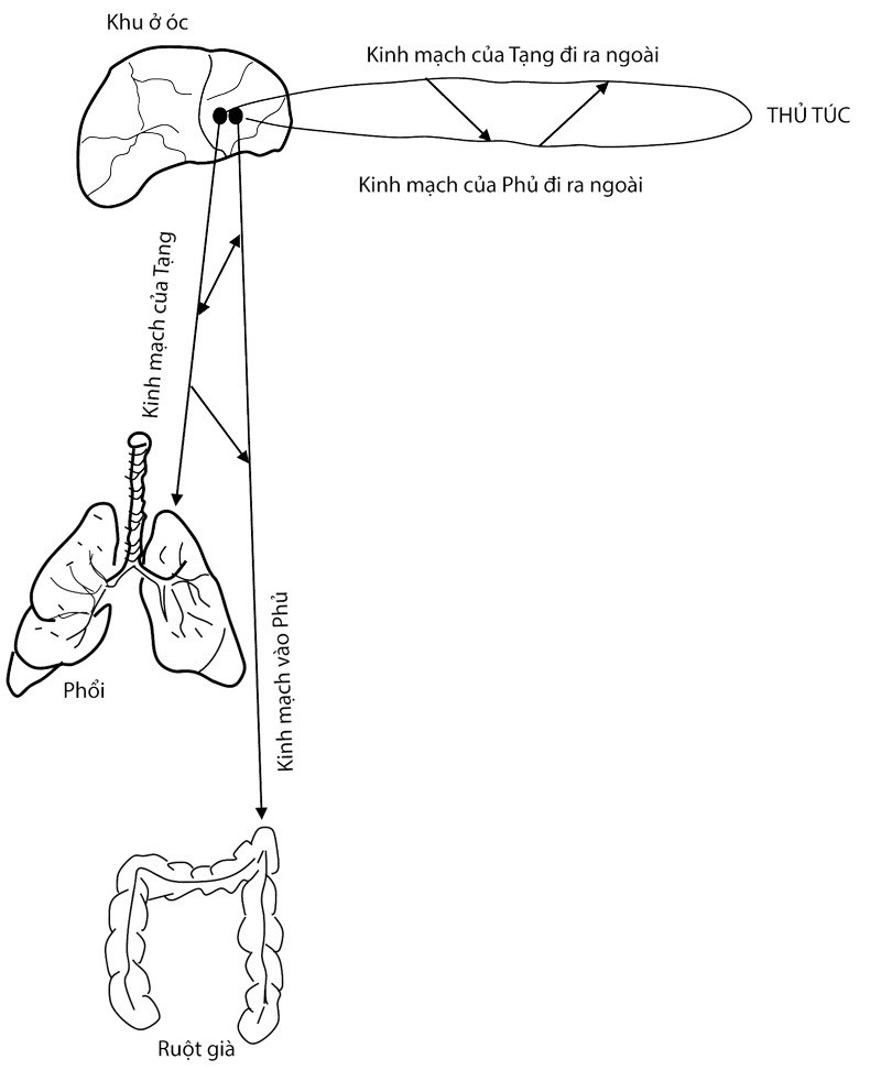 Sinh lực trong con người thuận theo vòng vận chuyển của trời đất, khí dương bắt đầu từ bên dưới phía trái mà đi lên đến cùng cực, thì lại phải chuyển sang bên phải đi xuống dưới mà vào trong.
