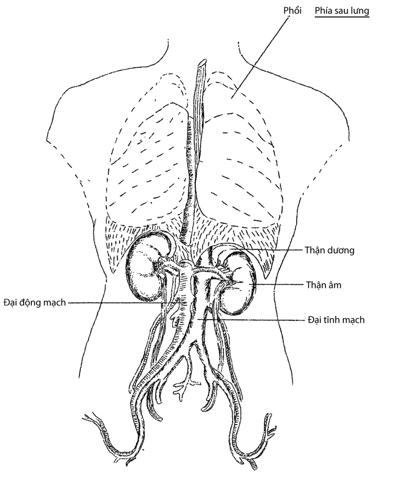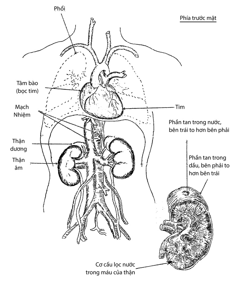 Nếu đem sánh với tạng Tỳ thì ta thấy tạng Thận tuy là tạng âm, nhưng là âm còn nhỏ; cho nên gọi là Thiếu âm ở trong âm. Tạng Thận thuộc Thủy, mùa Đông, hướng Bắc cũng thuộc Thủy; cho nên khí của Thận thông với khí mùa Đông.