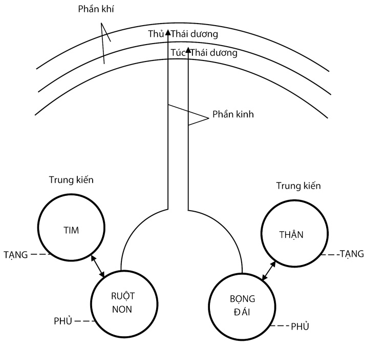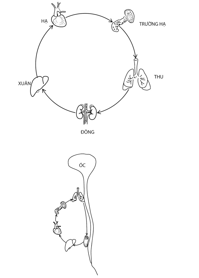 Mặt trời là một khối lửa, tạng Tim cũng là tạng lửa. Mặt trời đối với ta là cực dương, và xích đạo thường lệch về Nam, mùa Hạ là mùa nóng nhất. Cho nên tạng Tim cũng là Thái dương ở trong dương, và thông với khí mùa Hạ. Vì sao mà biết được thế? – Vì khi chưa xảy ra hiện tượng thì chỉ là đồng nhất không hai, mà đã xảy ra hiện tượng là tất có đồng loại hấp dẫn tụ về, hễ là nóng thì phải hút về lửa, lạnh thì phải qui về nước, nơi nào thế lực mạnh nơi đó là chủ động.