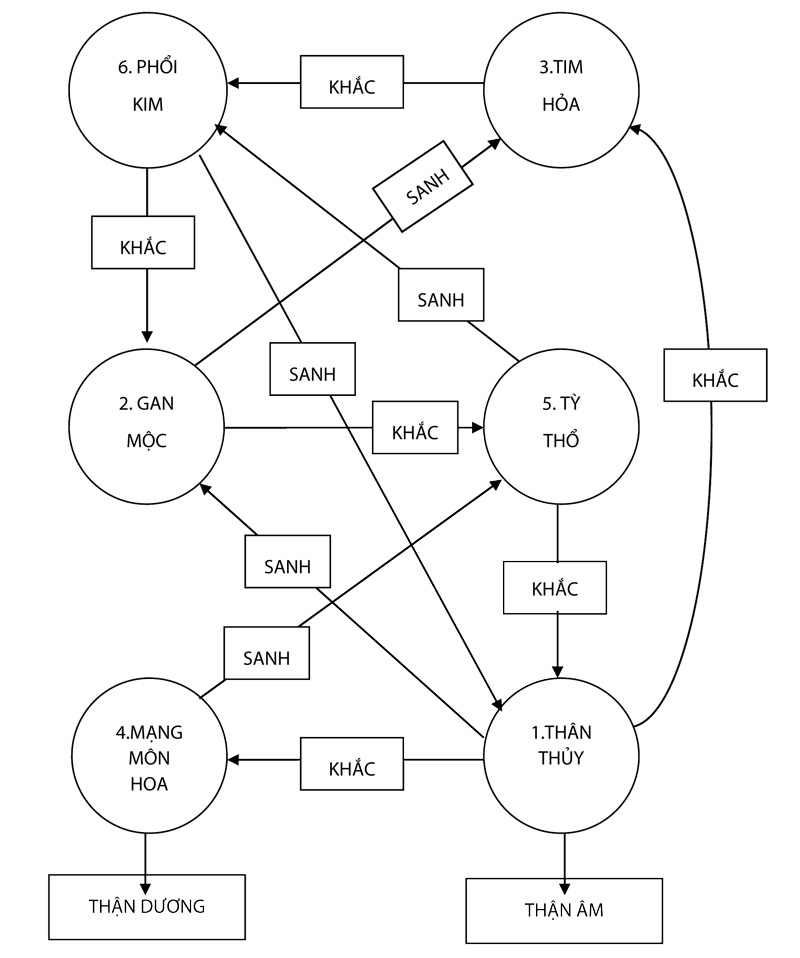 Trước đây 5-6 ngàn năm, NỘI KINH nói: “Tạng Tim nhờ tạng Phổi ở khí Kim thanh mát, tạng Phổi nhờ tạng Tim ở khí Hỏa ấm nóng”. Và nói: “Phế Kim sanh Thận Thủy”. – Thế là người xưa nhìn quả địa cầu nầy với một con người, tựa hồ như nhìn vào cái nồi tuần hoàn mà chúng tôi đã có dịp nhắc đến ở thiên thứ năm. Như thế tức là người xưa chưa biết gì hết về khinh khí hợp với dưỡng khí mà thành ra nước, hay là người nay chưa biết rõ người xưa?! Đây cũng là một điều cần phải chiêm nghiệm.