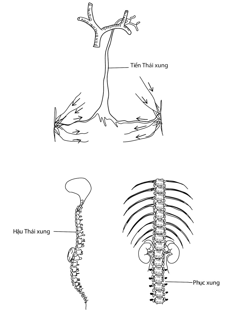 3- Ở dưới cổ chân có hai động mạch (xem hình động mạch hai bên cổ chân): một ở phía sau mắt cá trong độ một lóng rưỡi tay; hai ở phía trước cổ chân theo chiều quãng giữa ngón cái và ngón trỏ, chỗ lằn ngang giáp ranh của bàn chân và cổ chân. Phía sau thuộc vùng huyệt Thái khê, phía trước thuộc vùng huyệt Thái xung; cho nên người ta thường gọi chung là mạch Thái xung Thái khê. Vì thế mà mỗi khi khám bệnh, phần khám mạch người ta đều quan sát trọn cả ba phần mạch như đã nói ở trên, để sự nhận xét được mười phần chu tất.