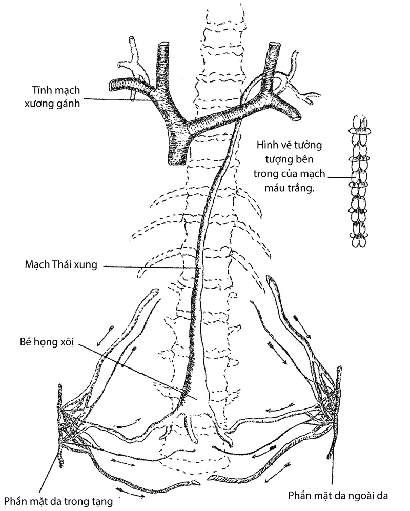Tạng có 5, phần tinh thần của tạng cũng có 5, phần sung túc cũng có 5, phần tinh hoa cũng có 5. Người ta đã có thể nương nơi phần tinh hoa mà biết được nội tạng; và người ta cũng biết được nội tạng và tinh thần là phần gốc, phần có trước; còn xác thân là phần sung túc là phần ngọn, phần có sau. Nếu nội tạng có nơi xảy ra chướng ngại, lẽ tất nhiên phần xác thân bên ngoài cũng có hiện sự chướng ngại, chướng ngại ấy dĩ nhiên là phải có quan hệ đến phần tinh thần không nhiều thì ít. Cũng như guồng máy tinh thần xảy ra chướng ngại tất nhiên nội tạng cũng như xác thân bên ngoài cũng phải có xảy ra hiện tượng chướng ngại. Ngược lại giờ đây thử hỏi: khi thành phần bên ngoài xác thân có một vùng xảy ra chướng ngại, thì sự chướng ngại ấy có quan hệ gì trong nội tạng và tinh thần không? Thí dụ như: sung túc của Phổi ở ngoài là mặt da, giờ đây có một vùng mặt da bị chướng ngại như máu ở mặt da thiếu lưu thông chẳng hạn, thì sự thiếu lưu thông ấy có ảnh hưởng thế nào vào phần phách cũng như tạng Phổi?